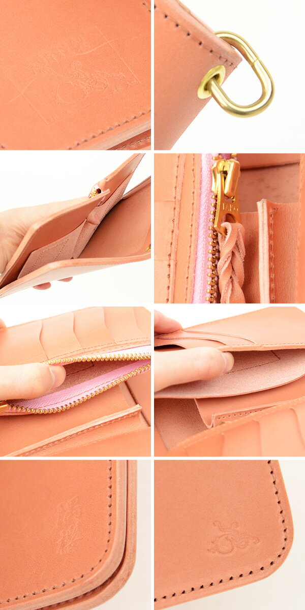 カードポケット4段×2、ジッパー付きコインポケット、ウォレットチェーン用ブラスカン付き。